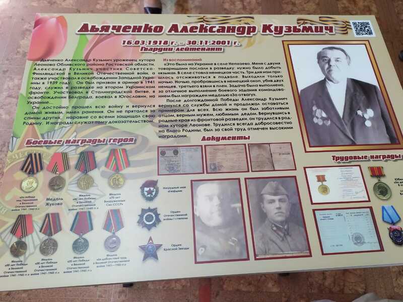 Открытие «Парты героя» 14 февраля 2026 Открытие «Парты героя» 16 июня 2023г. в МБОУ «Леоновская СОШ» состоялось знаменательное торжественное мероприятие, посвященное открытию «Парты героя» участника Великой Отечественной войны Гвардии лейтенанта Дьяченко Александра Кузьмича. На протяжении многих лет школа активно занимается патриотическим воспитанием молодого поколения. В 2023 году коллектив школы вместе с обучающимися принял участие во Всероссийском проекте «Объединяя поколения» «Парта героя». «Парта Героя» - это ученический стол, на котором размещена фотография Героя, информация о фактах его биографии и заслугах. Право сидеть за Партой Героя будет присуждаться учащимся за отличные оценки, а также за активную общественную работу по итогам четверти. На торжественном мероприятии присутствовали: специалист Александровского сельского поселения Обухов А.А., родственники Дьяченко А.К., сын Иван Александрович, дочь Татьяна Александровна, внуки и правнуки. На мероприятии прозвучали напутственные слова директора школы, которому было предоставлено право открыть «Парту героя», слова благодарности от родственников Александра Кузьмича. Право первым сесть за парту Героя было предоставлено председателю первичной организации школы «Движение первых», неоднократному победителю и призёру конкурсов различного уровня ученику 9класса Донскову Вадиму. С напутственным словом к нему обратился специалист Александровского сельского поселения Обухов А.А.. Затем торжественно прозвучали слова клятвы Вадима. Всероссийский образовательный проект Парта Героя позволяет напомнить о земляках - Героях, совершивших доблестный поступок, проявивших личное мужество, защищая свою Родину. Открытие в школе Парты Героя, – это новая страница в истории нашей школы. Это возможность для многих ребят стать лучше, быть уверенными в своих способностях, стремиться достигнуть высоких показателей в учебе и творчестве. Открытие Парты Героя будет способствовать формированию у школьников уважительного отношения к истории страны, ее героическому прошлому и настоящему.