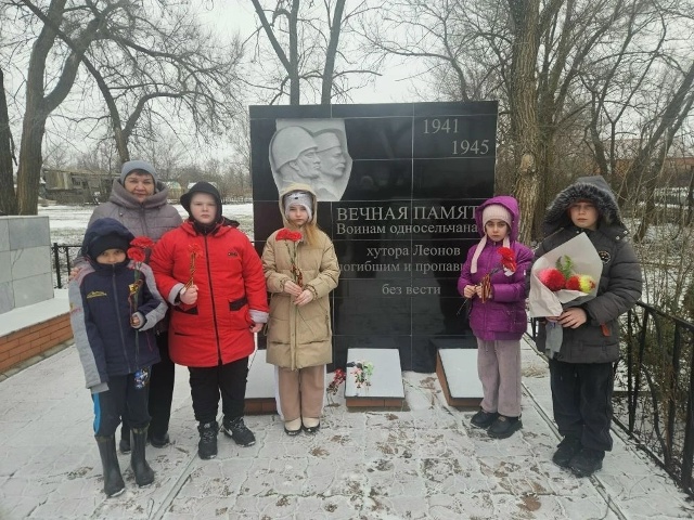 Активисты первичного отделения Движение Первых МБОУ "Леоновская СОШ" приняли участие во Всероссийской акции «Нашим Героям». 18 февраля 2026 Активисты первичного отделения Движение Первых МБОУ "Леоновская СОШ" приняли участие во Всероссийской акции «Нашим Героям». В рамках акции провели торжественные мероприятия "Цветы у обелиска". В ходе мероприятия проведены торжественные построения, а также возложение цветов к памятнику героев Великой Отечественной войны, обелиску погибшим хуторянам и памятной мемориальной доске герою СВО Пивневу О.С.