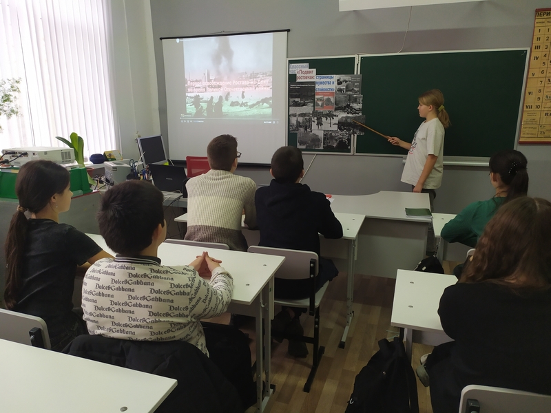 Первое освобождение Ростова-на-Дону от фашистских захватчиков. 28 ноября 2025 Первое освобождение Ростова-на-Дону от фашистских захватчиков. 29 ноября для жителей Ростова - памятная дата. В этот день 84 года назад воины Красной Армии освободили город от немецко - фашистских захватчиков. В ноябре 1941-го советские солдаты отбили столицу Дона, завершив восьмидневную оккупацию, ставшую известной как «кровавая неделя».В честь этого знаменательного события для учеников МБОУ «Леоновская СОШ» был проведен классный час на тему «Подвиг ростовчан: страницы мужества и стойкости». На мероприятии советник директора по воспитанию и взаимодействию с детскими общественными объединениями Жданова И.Г. рассказала о героизме жителей Ростова-на-Дону в годы Великой Отечественной войны. Школьники узнали, как противник захватил город, как в ноябре 1941-го советские солдаты отбили столицу Дона, завершив восьмидневную оккупацию, ставшую известной как «кровавая неделя».