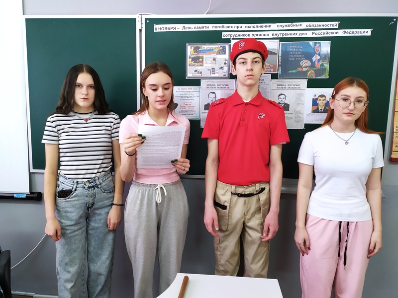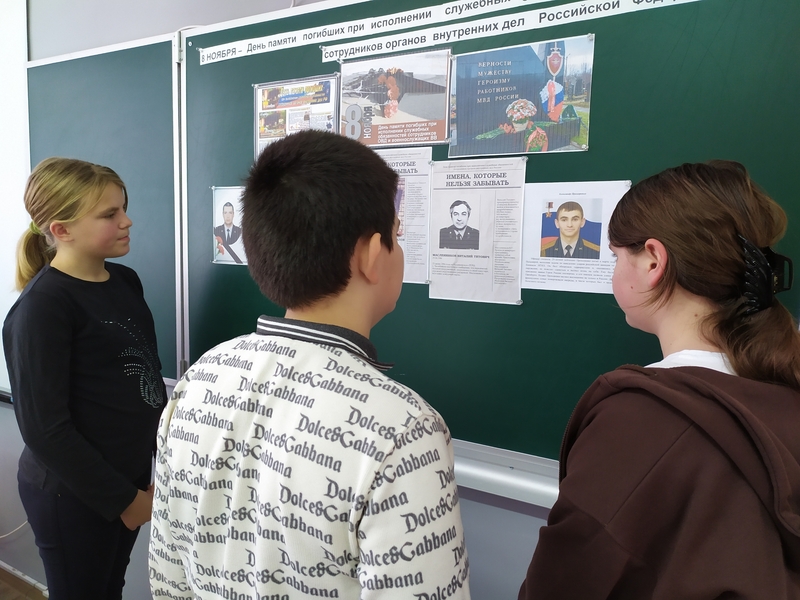 «Подвиг во имя жизни». 13 ноября 2025 «Подвиг во имя жизни».Ежегодно 8 ноября в России отмечается День памяти погибших при исполнении служебных обязанностей сотрудников органов внутренних дел. Этот день посвящен тем, кто отдал свою жизнь, защищая закон и порядок, обеспечивая безопасность граждан и поддерживая правопорядок в стране. 8 ноября в МБОУ «Леоновская СОШ» прошёл классный час «Подвиг во имя жизни».Советник директора по воспитанию Жданова И.Г. совместно с активом школы подготовили информацию о сотрудниках органов внутренних дел, погибших при исполнении служебных обязанностей.Ребята услышали рассказ об истории возникновения МВД. Выступление сопровождалось презентацией. Вспомнили имена сотрудников, погибших при исполнении служебного долга. Состоялся диалог с обучающимися о том, какими качествами обладают настоящие герои. Ребята ответили на вопрос: "Почему нужно защищать Родину и беречь мир? "Такие мероприятия способствуют формированию уважения к профессии сотрудника органов внутренних дел и укреплению чувства патриотизма среди молодого поколения.