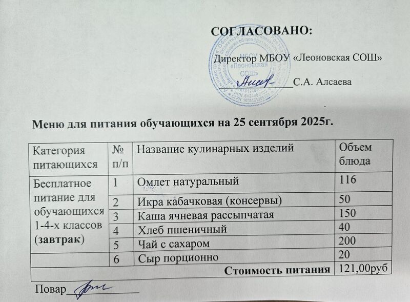 PDF Меню приготовляемых блюд для питания обучающихся 1-4 классов с ОВЗ МБОУ "Леоновская СОШ" (pdf, 1.3 MБ)