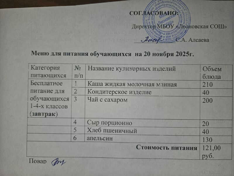 XLS Меню на 20.11.2025 года. (xlsx, 11.3 Кб)