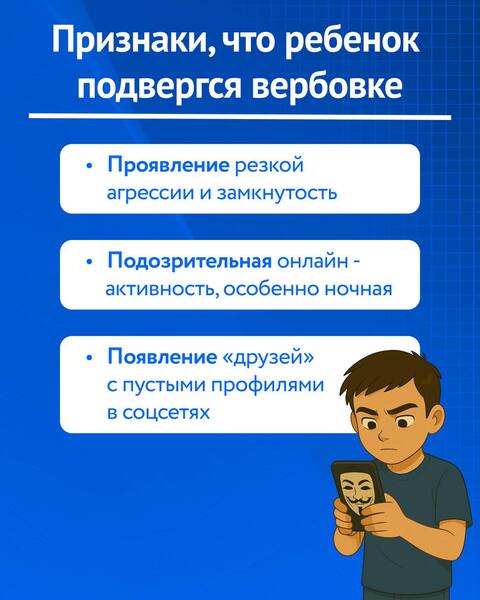 Онлайн вербовка подростков. 13 августа 2025 Онлайн вербовка подростков. Как распознать,что ребенка вербуют?