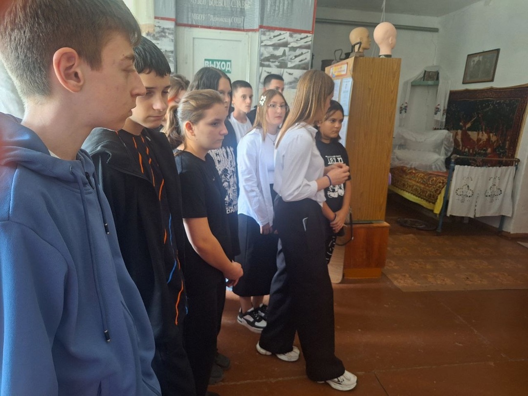 Экскурсия в школьный Музей боевой славы. 16 сентября 2024 13.09. в МБОУ «Леоновская СОШ», в рамках проведения мероприятий, посвященных празднованию 100-летия Обливского района и 280-летия ст. Обливской, с учащимися 8-11 классов была проведена экскурсия в школьный Музей боевой славы. Руководитель школьного музея, Донскова Любовь Викторовна, рассказала детям о жизни людей военного времени, о жизни наших земляков. Ребята ознакомились с экспозициями музея, в которых собраны материалы о ветеранах тоудовой славы, ветеранах Великой Отечественной войны, ознакомились с историей хутора. Дети с большим интересом перелистали альбомы, рассматривали фотографии и экспонаты музея.