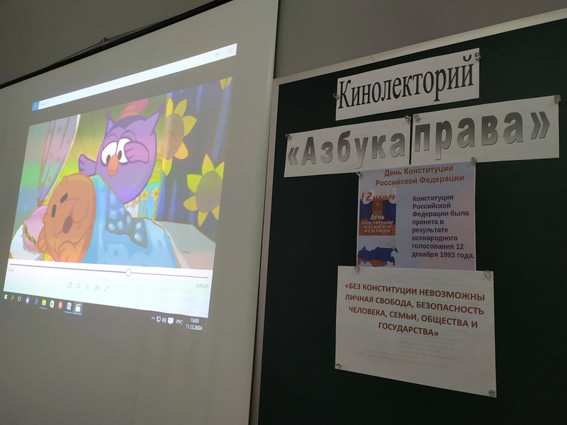 Кинолекторий «Азбука права» 12 декабря 2024 Кинолекторий «Азбука права». В МБОУ «Леоновская СОШ» ко Дню Конституции советник директора по воспитанию провела с учащимися начальной школы кинолекторий «Азбука права».Ребята посмотрели познавательные мультфильмы «Азбука прав ребёнка», узнали, какими правами они обладают в их юном возрасте, согласно Конституции Российской Федерации, обсудили в формате открытого диалога, какими правами и обязанностями они пользуются как ученики.После просмотра дети поучаствовали в творческой деятельности по созданию конституции своего класса, обсудили и составили правила поведения в каждой из четырёх Статей: Учёба, Общение, Общая культура и Безопасность.В конце занятия ученики сделали вывод, что класс похож на мини-государство, и важно соблюдать правила, уважать и поддерживать друг друга для успеха и благополучия всей «страны».