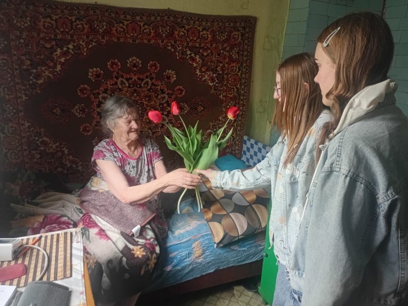 Поздравление «детям войны», ветеранам Труда. 29 апреля 2025 Волонтеры Первых школьного отряда «Волонтер» МБОУ «Леоновская СОШ» организовали проведение месячника волонтерского движения в период с 23 апреля по 13 мая 2025 года. В ходе которого волонтеры оказывают «детям войны», ветеранам Труда различные виды помощи, в том числе по благоустройству домов и придомовых территорий, уборке жилых помещений, благоустройству приусадебных участков. 23 апреля волонтеры побывали у Крыловой Валентины Ивановны (дети войны), жительницы х.Синяпкин, они тепло поздравили ее с Днем Победы и вручили цветы.