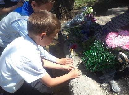 "Свеча памяти" 08 мая 2013 В школе прошла акция "Свеча памяти". Участники акции почтили память тех, кто подарил нам ПОБЕДУ в далёком 45 году!