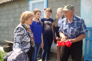 "Сирень Победы" 23 апреля 2018 Патриотическая акция «Сирень Победы» в МБОУ «Леоновская СОШ» проведена 23 апреля 2018 года в рамках экологической акции «Чистота спасёт мир». Цели: развить у подрастающего поколения чувства благодарности и уважения к подвигу ветеранов ВОВ, к истории и исторической памяти, к героическому наследию России. Задачи: - пропагандировать героическое прошлое Отечества через участие подростков в патриотической акции «Сирень Победы»; - развивать чувство уважения к памяти воинов Великой Отечественной войны; - расширять знания подростков о событиях ВОВ и её участниках. Участники акции: члены РОДО «Новое поколение», школьники, учителя, родители, добровольцы. Мероприятие началось со школьной линейки, на которой перед всеми присутствующими были обозначены повод и технология проведения мероприятия. После чего участники акции приступили к посадке сирени у памятника воинам-освободителям хутора Леонова и у мемориала землякам, не вернувшимся с войны. 21 апреля 2017года в МБОУ «Леоновкая СОШ» в рамках Всероссийской акции, в рамках экологической акции «Чистота спасёт мир» программы «Шире круг» РОДО «Новое поколение» проведена патриотическая акция «Сирень Победы». Цель акции: развивать у подрастающего поколения чувства благодарности и уважения к подвигу ветеранов Великой Отечественной войны, к истории и исторической памяти героев МАЛОЙ РОДИНЫ, к героическому наследию РОССИИ. Задачи: пропагандировать героическое прошлое Отечества через участие подростков в патриотической акции «Сирень Победы». Участники акции: члены РОДО «Новое поколение», школьники, учителя, родители, добровольцы. В парке у памятника воинам-освободителям участники акции и добровольцы высадили 8 кустов сирени. В школе заложена АЛЛЕЯ ПАМЯТИ из 20 лип. Мероприятие началось с митинга, а закончилось минутой молчания в память о тех воинах, которые погибли на фронтах Великой Отечественной войны. 3 мая 2017 года в канун празднования Дня Победы в МБОУ «Леоновская СОШ» проходила Акция «Доброе сердце». Цель: формирование у учащихся доброты и милосердия к пожилым людям. С утра дети и учителя подготовили поздравительные открытки с добрыми словами тем, кто видел Великую Отечественную войну в раннем детстве. Учителя и учащиеся посетили всех, чьё детство опалено войной. Это люди, которым сейчас по 70-80 лет. У большинства из них отцы не вернулись с фронта. Говорят, что доброта творит чудеса. Все участники Акции погрузились в мир доброты. Во время проведения мероприятия наши учащиеся учились сопереживать, утешать, быть вежливыми и культурными. Они оказали посильную помощь одиноким. А наши Дети войны показали, что они еще с большим оптимизмом смотрят на мир. Вот таких акций доброты и милосердия необходимо делать больше. От этого мир становится намного добрее и миролюбивее!