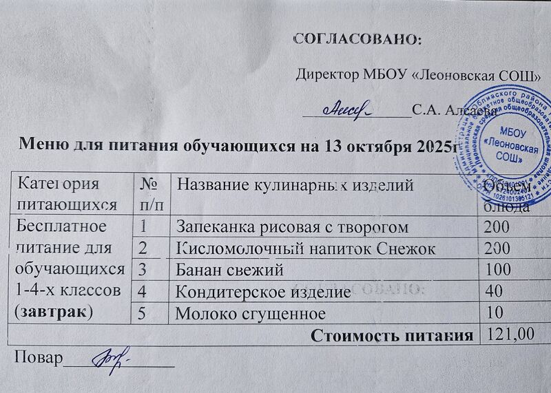 XLS Меню на 13.10.2025 года. (xlsx, 11.5 Кб)