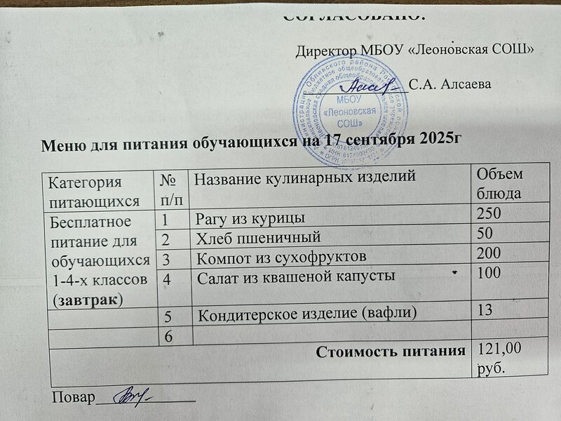 XLS Меню на 17.09.2025 года. (xlsx, 11.4 Кб)