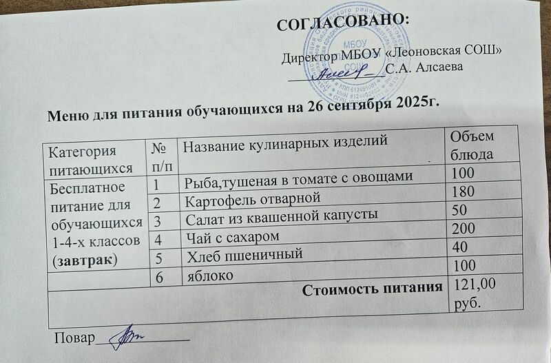 XLS Меню на 26.09.2025 года. (xlsx, 11.3 Кб)
