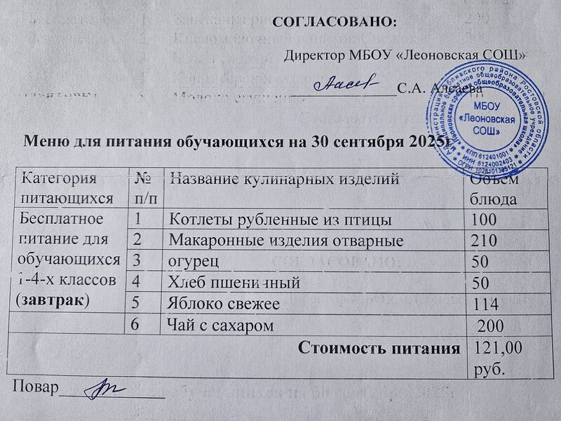 XLS Меню на 30.09.2025 года. (xlsx, 11.2 Кб)